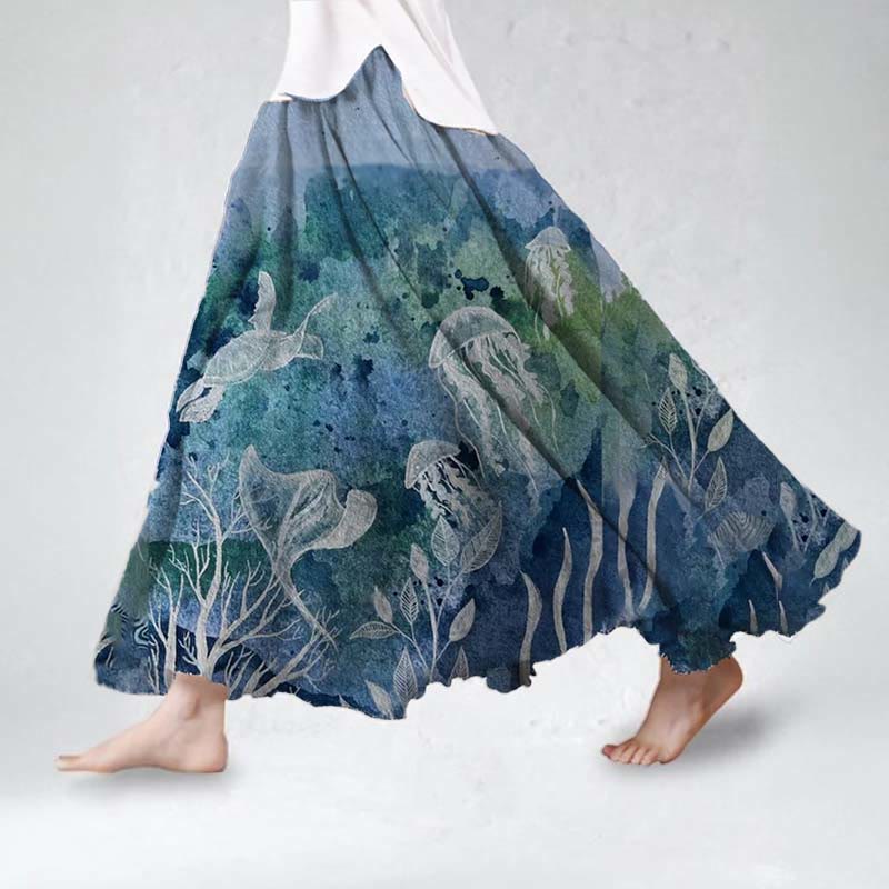 Dashingsoul Women's Oil Painting Ocean Animals Graffiti Art Print Skirt