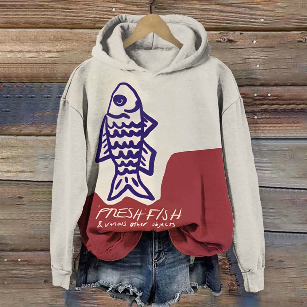Dashingsoul Japanese Style Sardines Print Casual Long Sleeve Hoodie