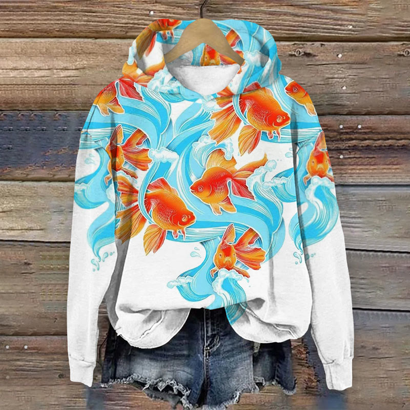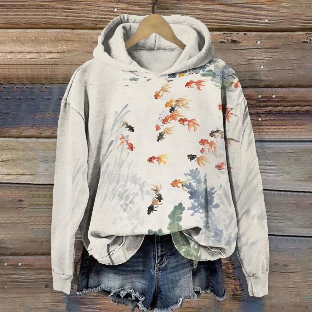 Dashingsoul Japanese Goldfish Art Print Casual Long Sleeve Hoodie