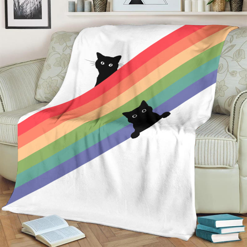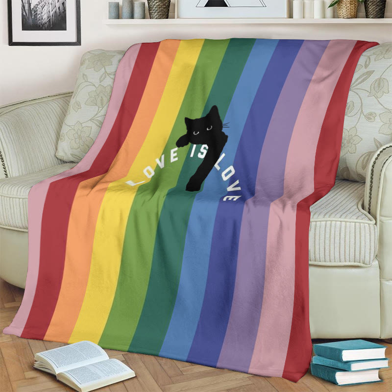 Dashingsoul Love Is Love Rainbow Black Cat Print Art Blanket