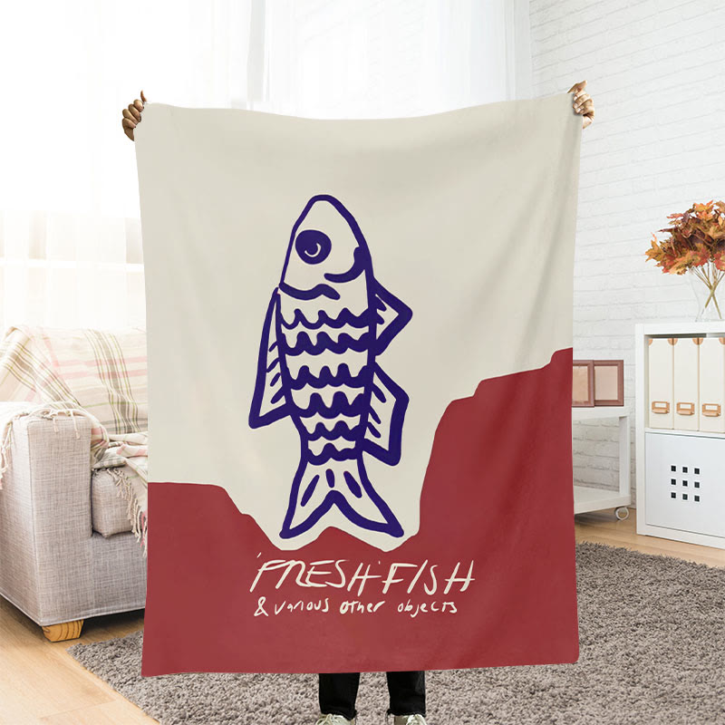 Dashingsoul Vintage Sketch Drawing Red Fish Art Blanket