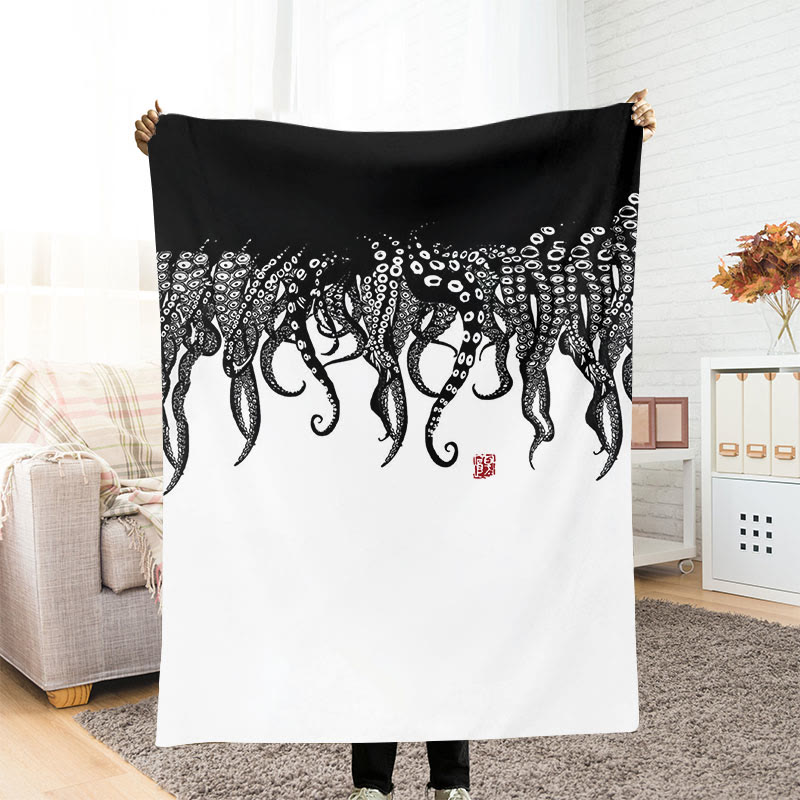 Dashingsoul Ink Watercolor Black Octopus Art Blanket