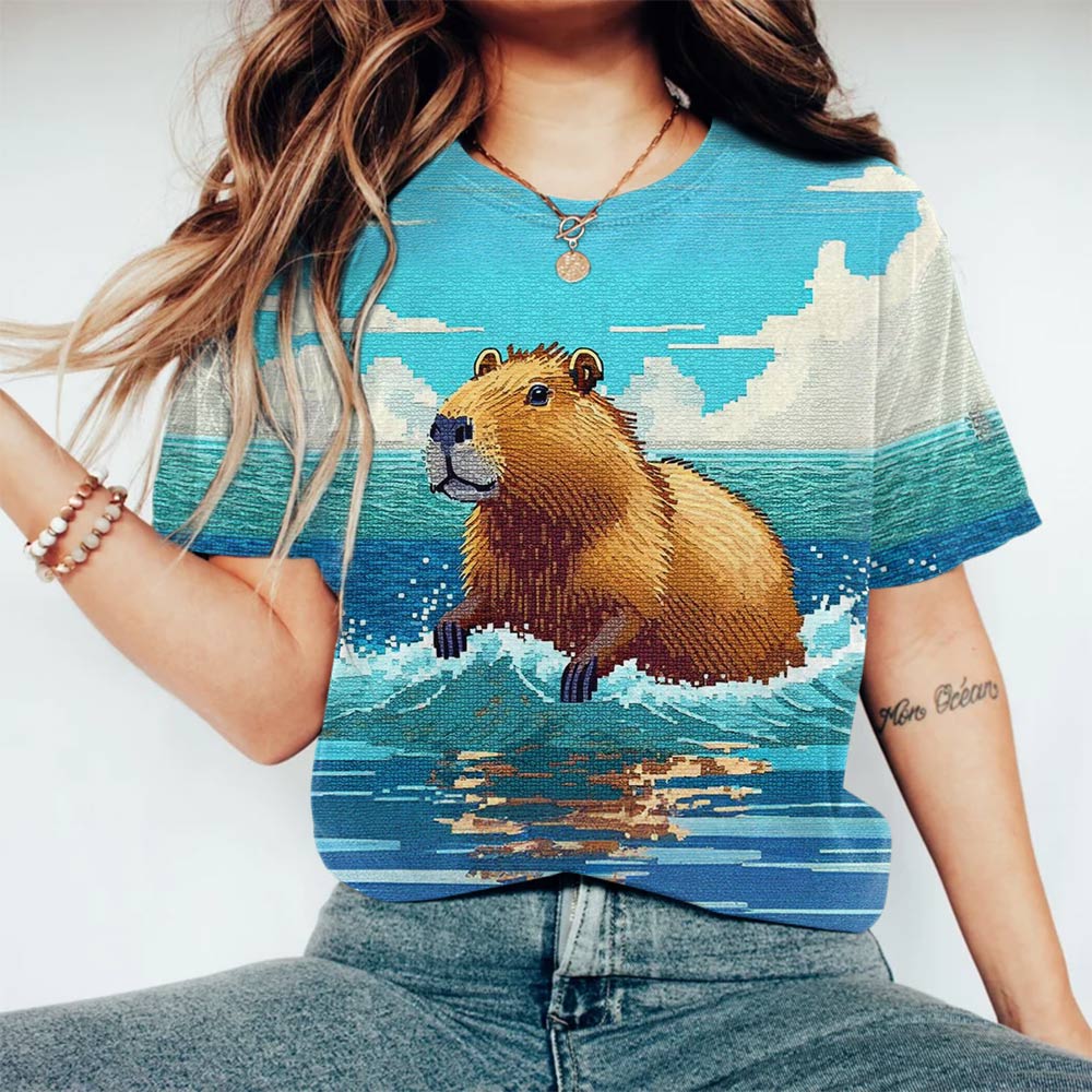 Dashingsoul Capybara In The Water Pixel Art Print Short Sleeve T-shirt