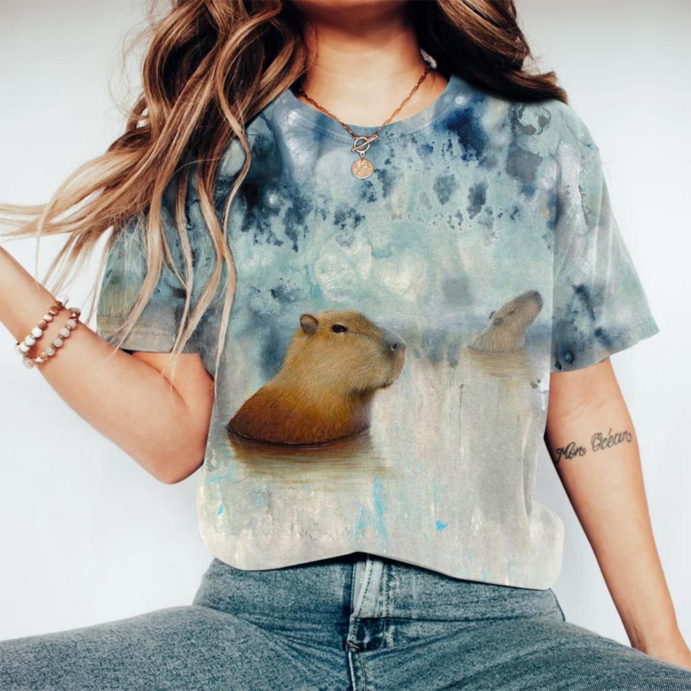 Dashingsoul Capybara Taking A Bath Print Short Sleeve T-shirt