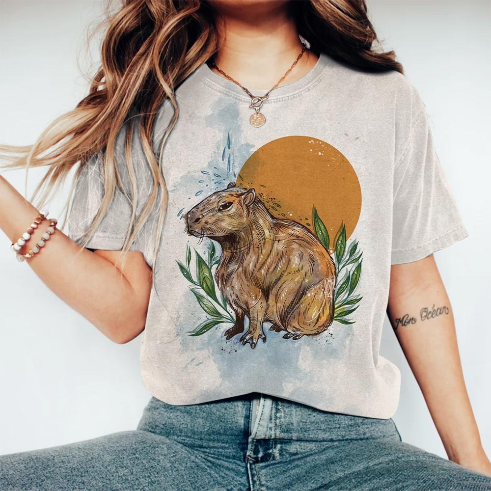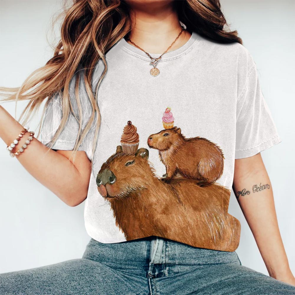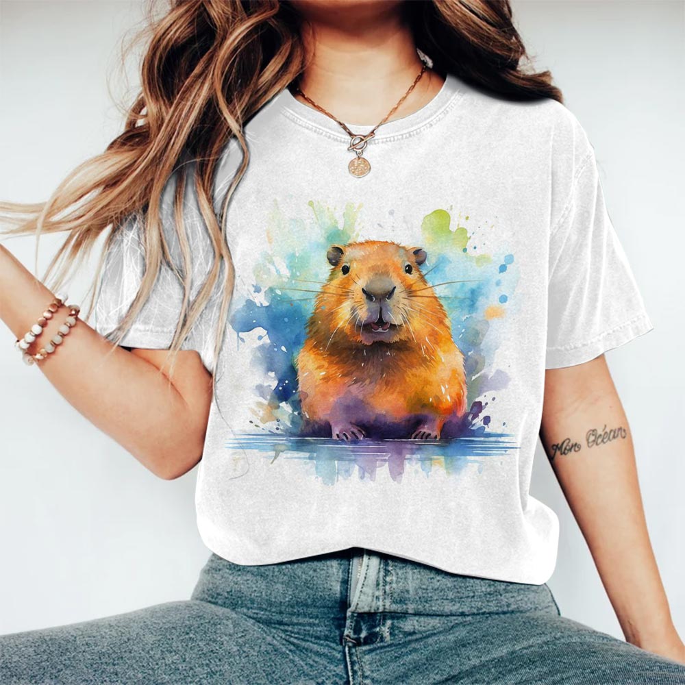 Dashingsoul Capybara Watercolor Print Short Sleeve T-shirt