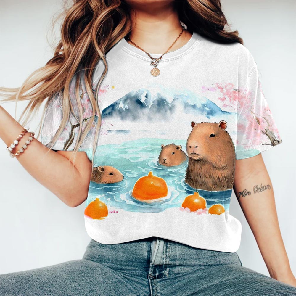 Dashingsoul Capybara Bathing In Hot Springs Print Short Sleeve T-shirt