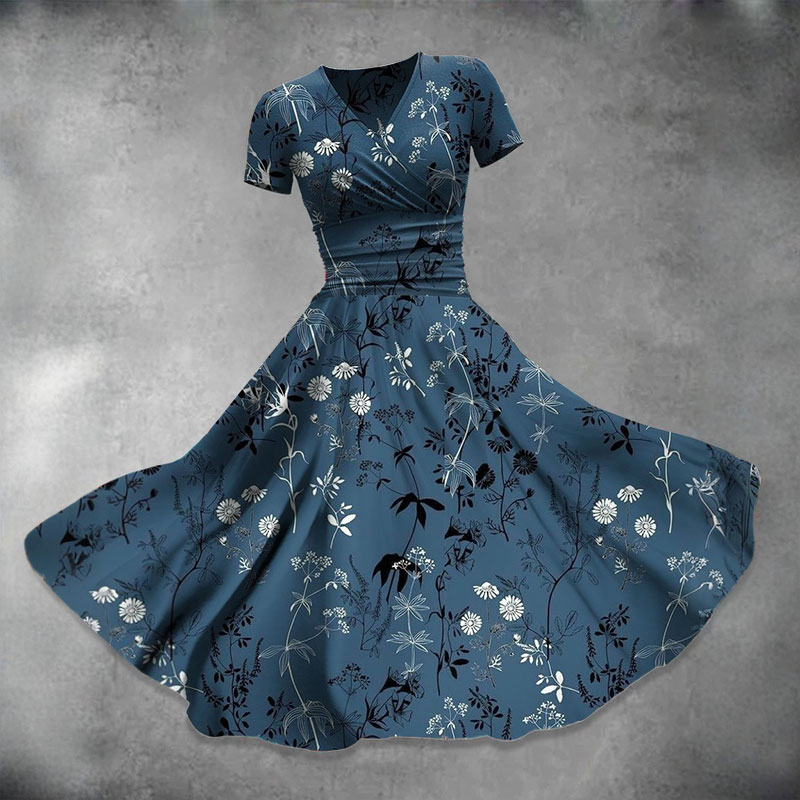 Dashingsoul Women's Vintage Floral Print Midi Dress