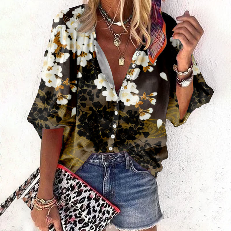 Women's Floral Art Print Casual Cotton Shirt