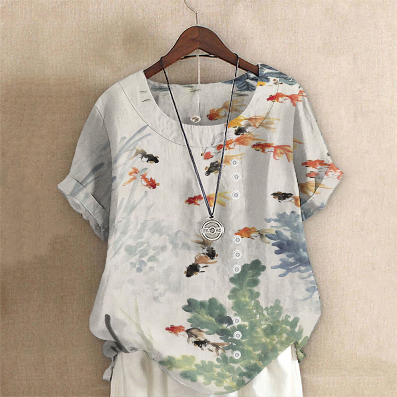 Dashingsoul Women's Watercolor Goldfish Art Casual Blouse