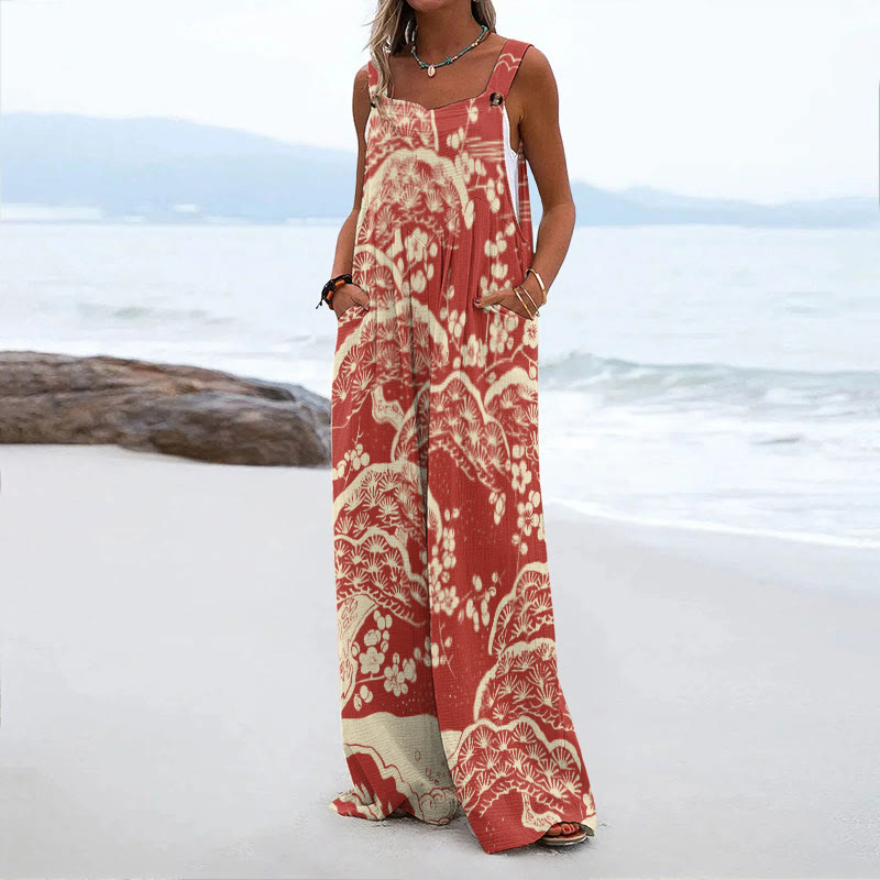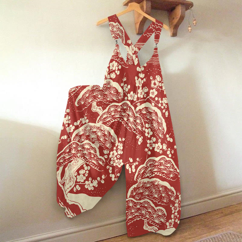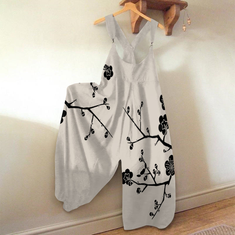 Dashingsoul Women's Japanese Art Plum Blossom Print Casual Jumpsuit