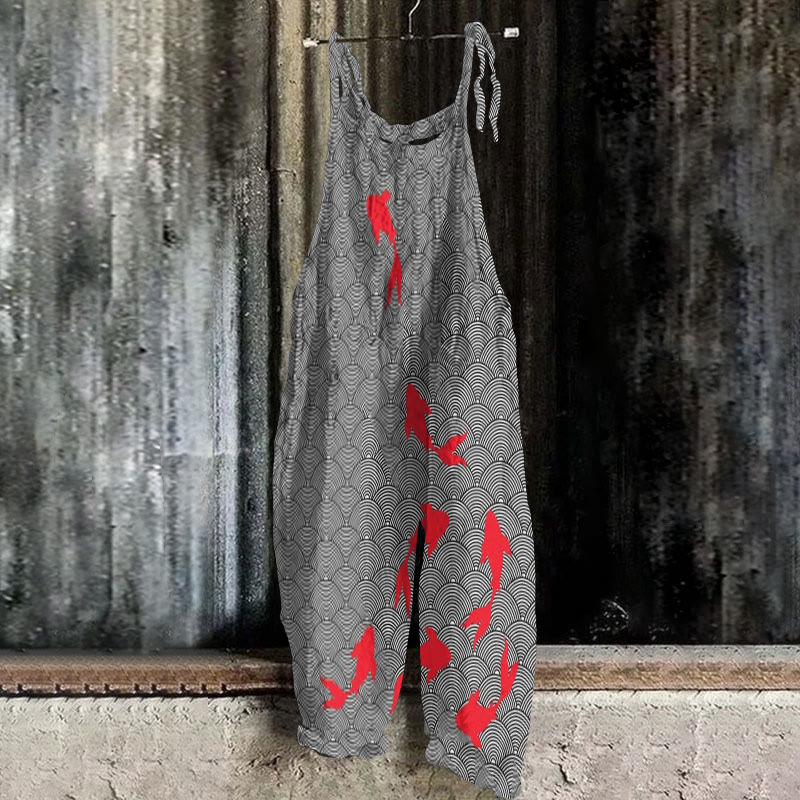 Dashingsoul Japanese Art Carp Print Casual Jumpsuit