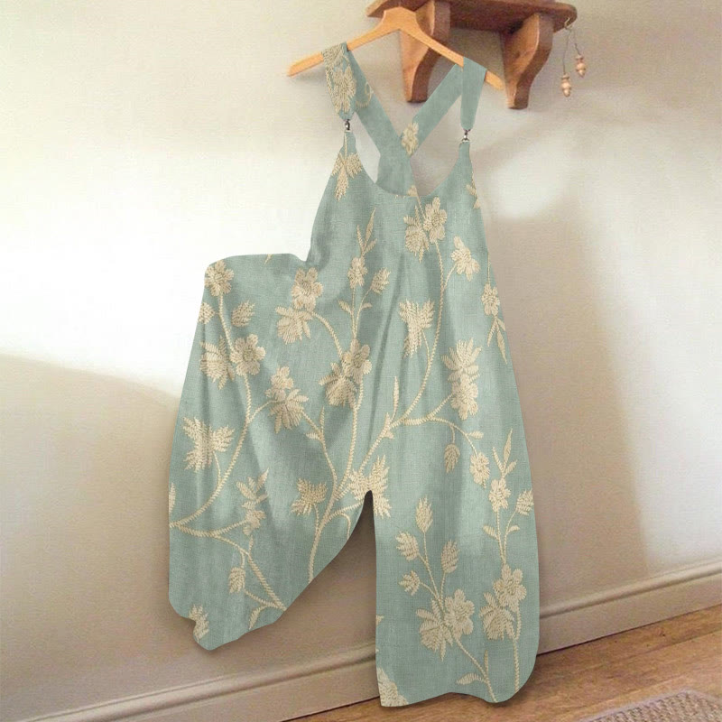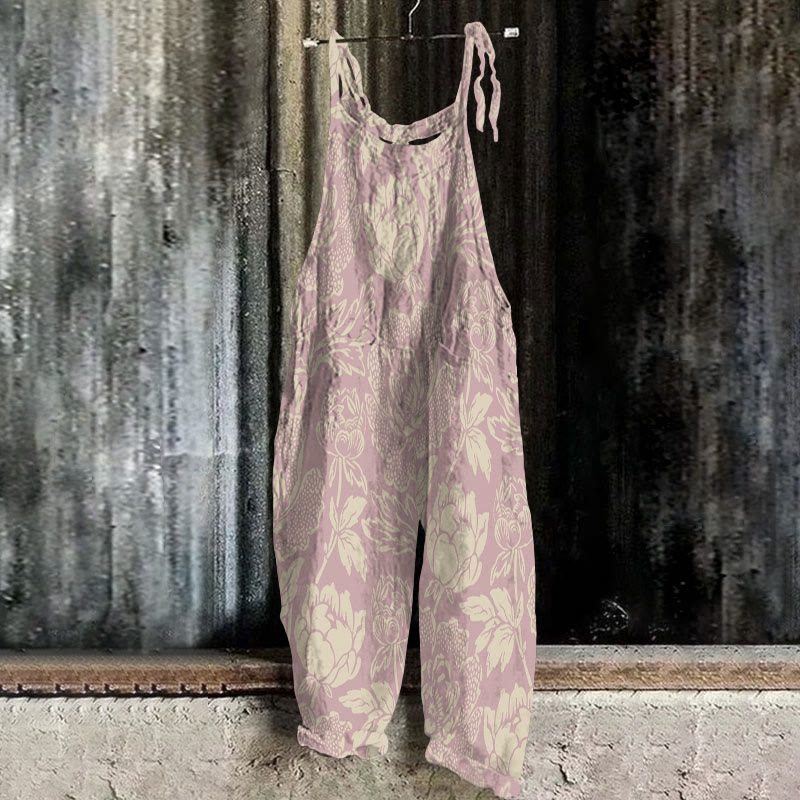Dashingsoul Vintage Floral Art Print Casual Jumpsuit