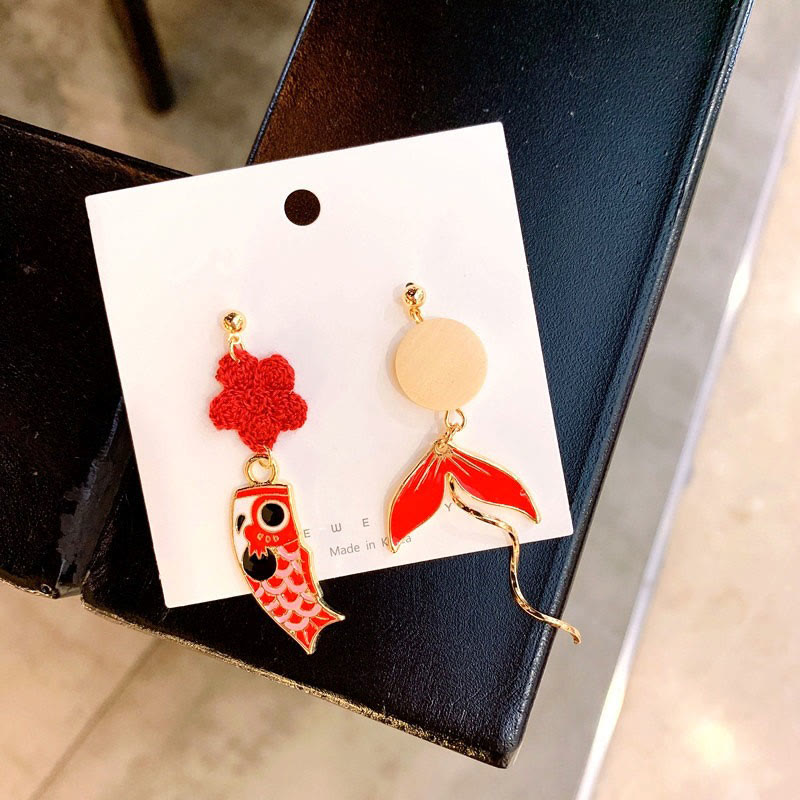 Dashingsoul Retro Ethnic Style Asymmetrical Floral Koi Fishtail Earrings