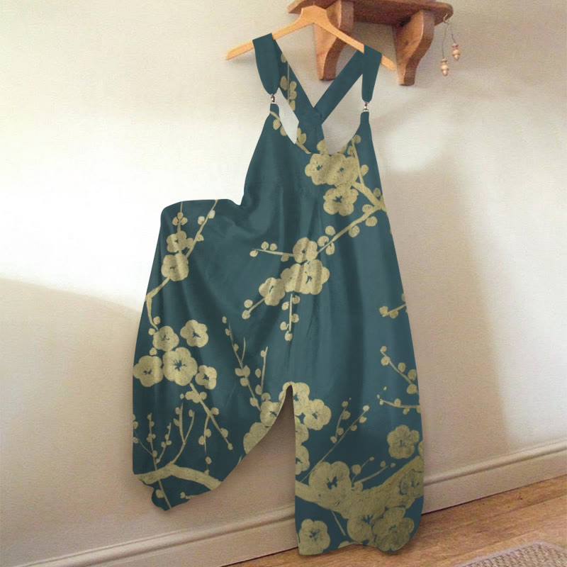 Dashingsoul Women's Japanese Floral Art Print Jumpsuit