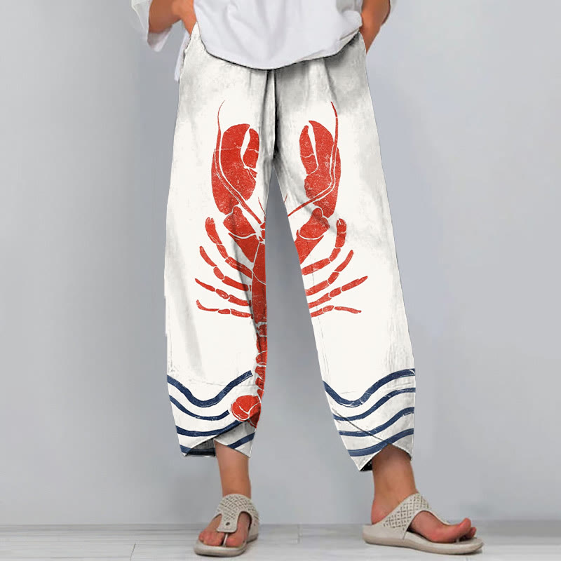 Dashingsoul Vintage Lobster Art Print Art Print Drawstring Pocket Women's Pants