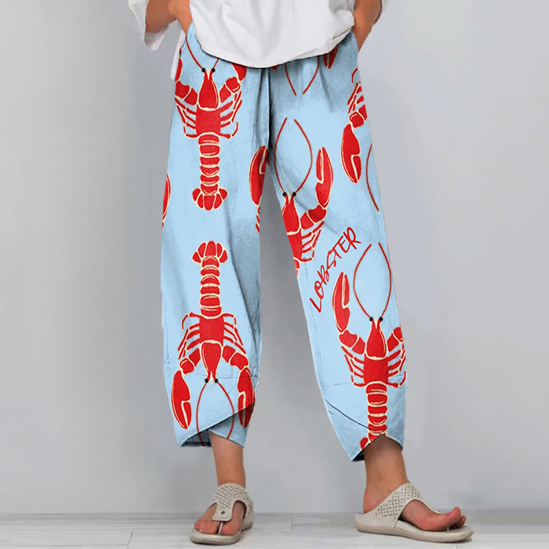 Dashingsoul Creative Big Red Lobster Art Print Drawstring Pocket Women's Pants
