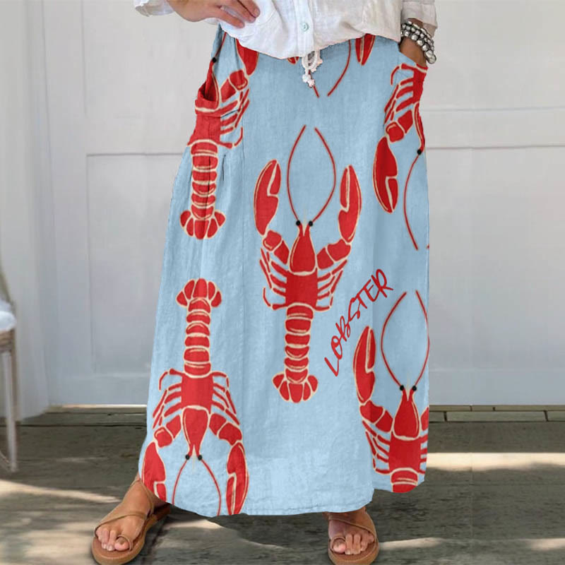 Women's Vintage Lobster Art Print Casual Pocket Skirt