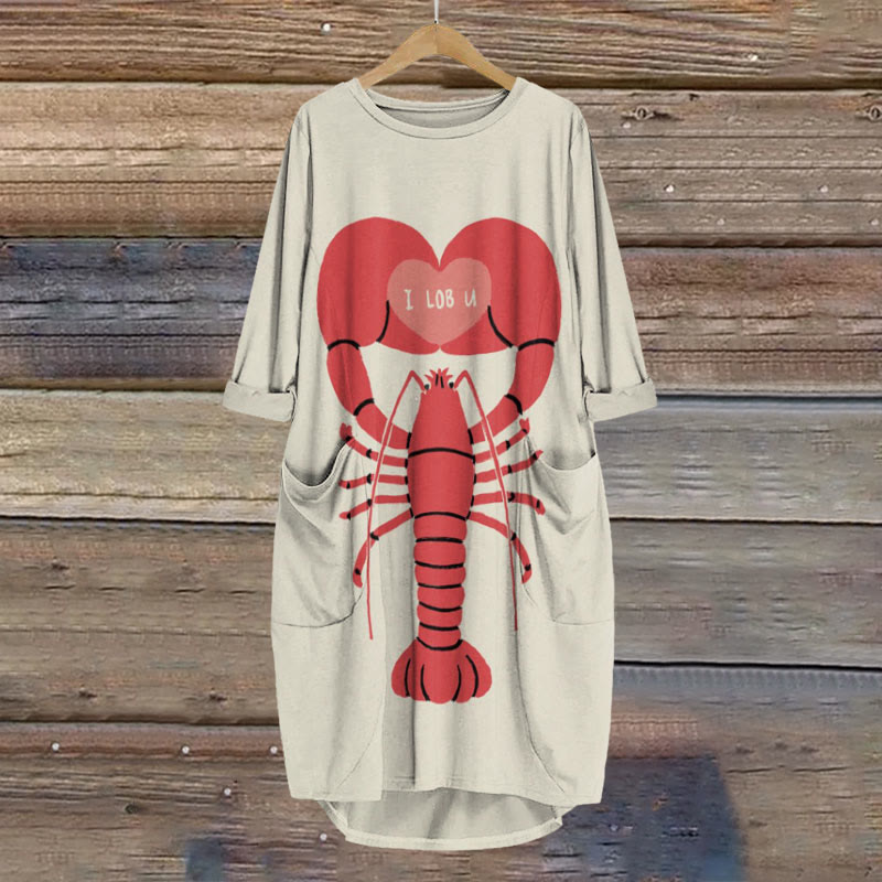 Dashingsoul Creative I Lob U Lobster Print Crew Neck Casual Dress