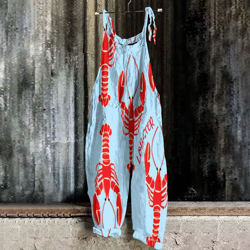 Dashingsoul Women's Creative Big Red Lobster Art Print Casual Jumpsuit