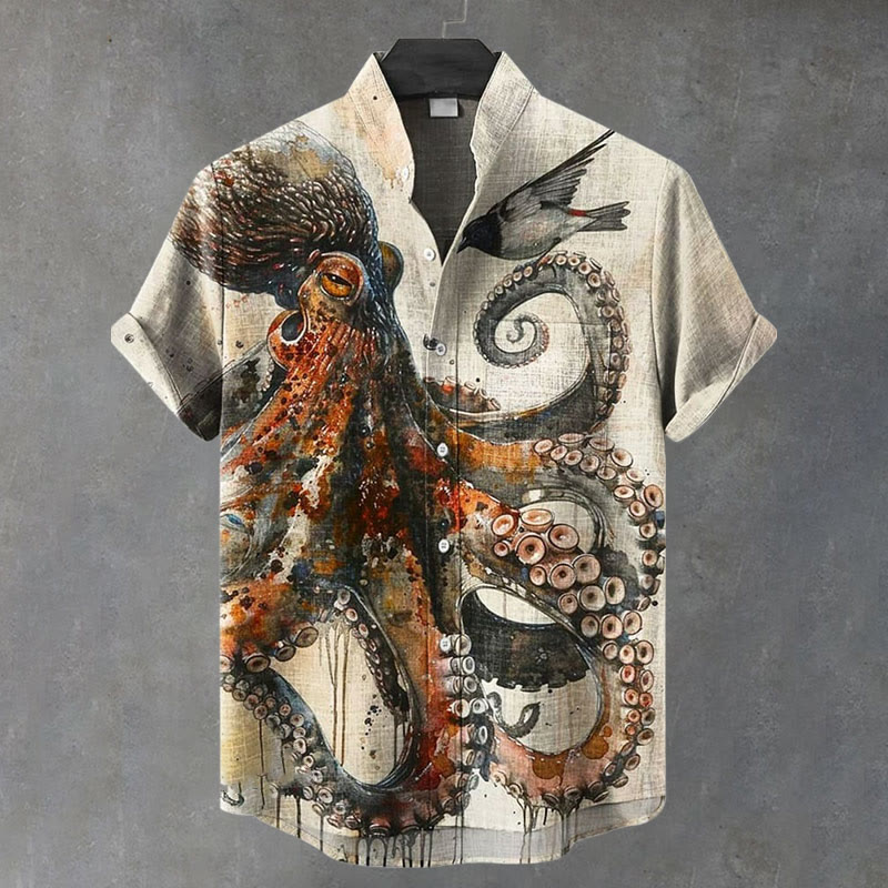 Men's Retro Octopus Tentacles Print Casual Shirt