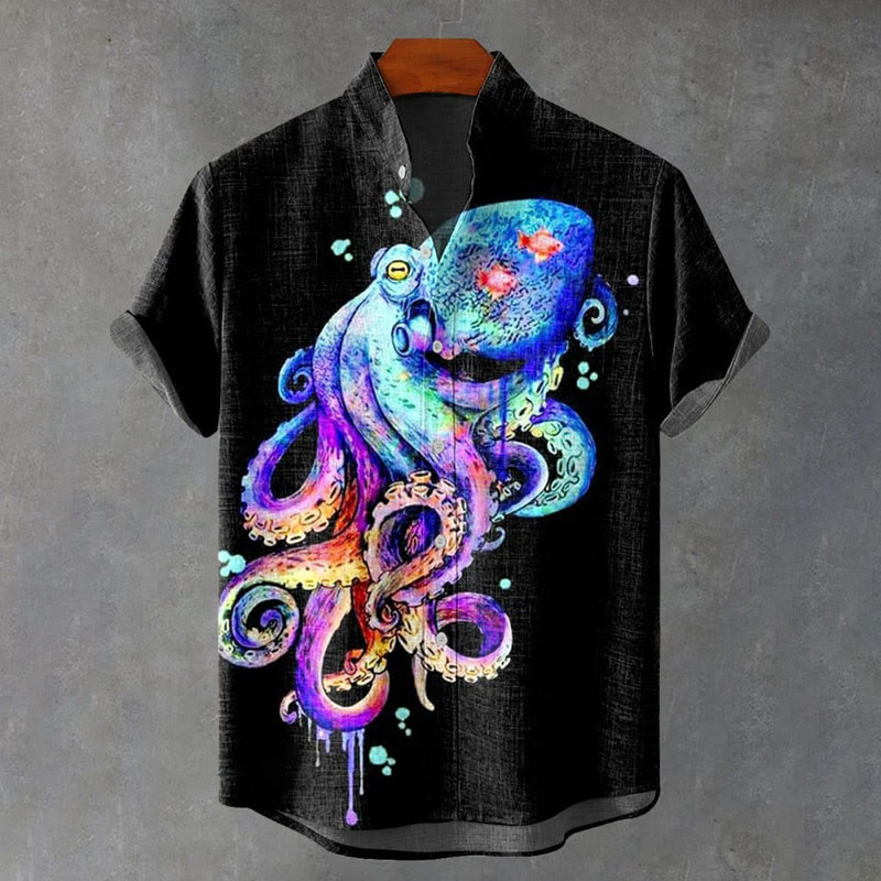 Men's Vintage Rainbow Octopus Print Casual Shirt