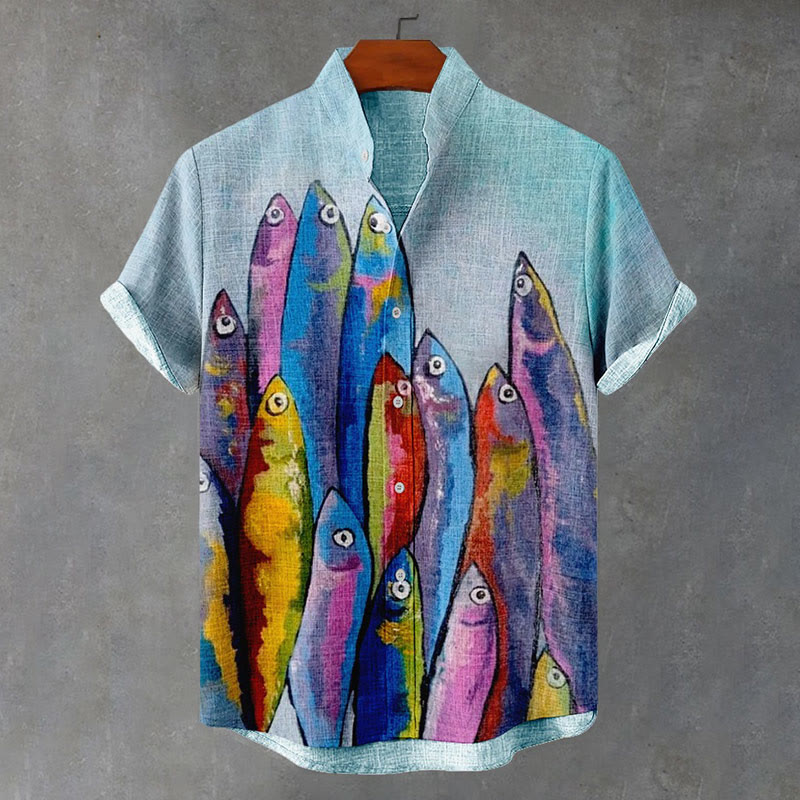 Dashingsoul Cute Multi-colored Sardines Oil Painting Art Print Casual Shirt