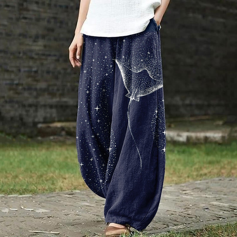Dashingsoul Starry Spotted Eagle Rays Print Casual Pants
