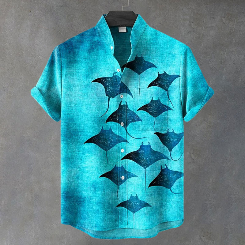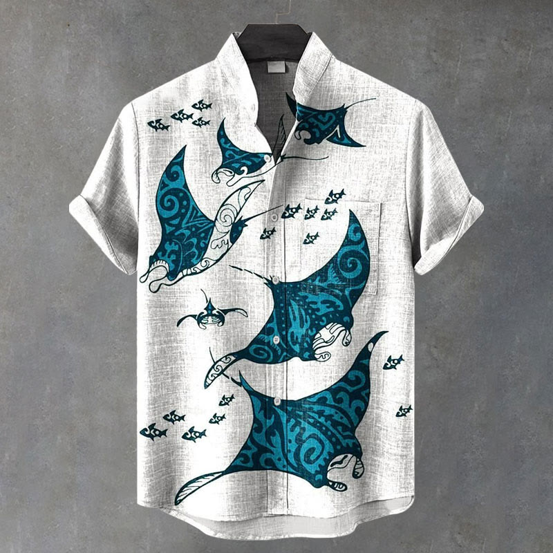 Dashingsoul Vintage Manta Ray Art Print Casual Shirt