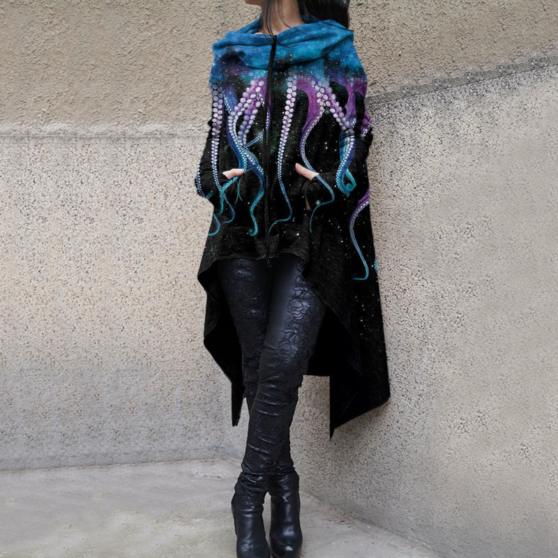 Dashingsoul Octopus Asymmetric Print Hoodie