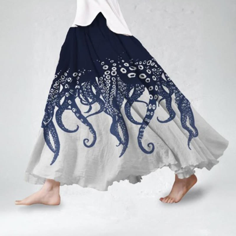 Dashingsoul Women's Japanese Vintage Octopus Tentacles Art Print Skirt