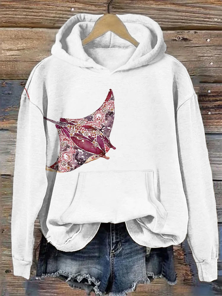 Dashingsoul Cotton Women's Colorful Floral Dolphin Print Casual Hoodie