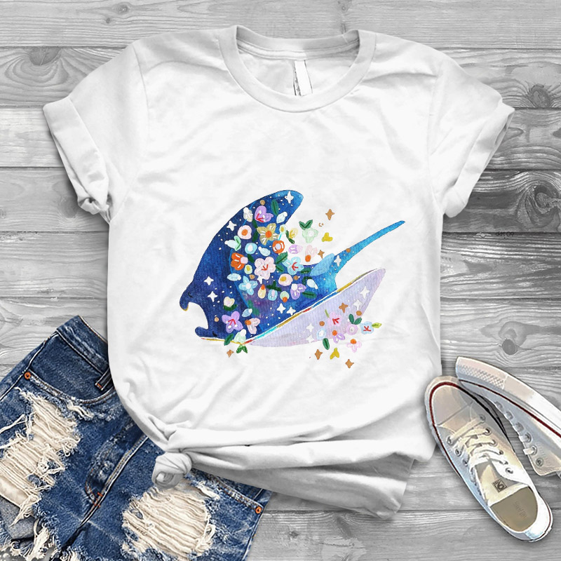 Dashingsoul Women's Dreamy Cute Floral Manta Ray Print Casual T-shirt