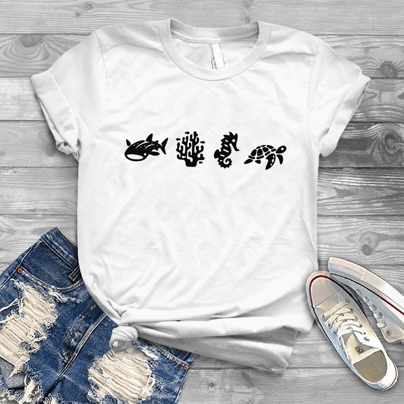Dashingsoul Women's Simple Marine Life Print Casual T-shirt