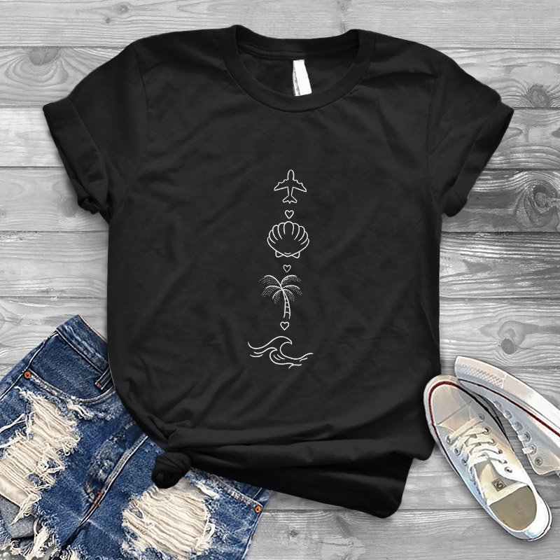 Dashingsoul Vacation Tropical Beach Line Drawing Art Print Casual T-shirt
