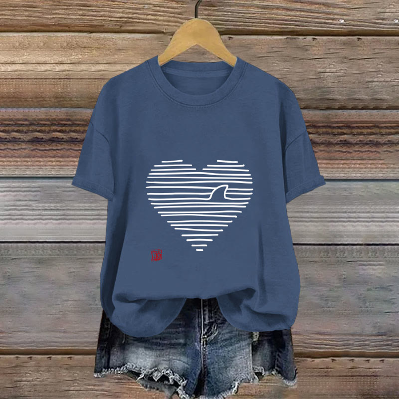 Dashingsoul Love Shark Minimalist Line Drawing Art Print Casual T-shirt