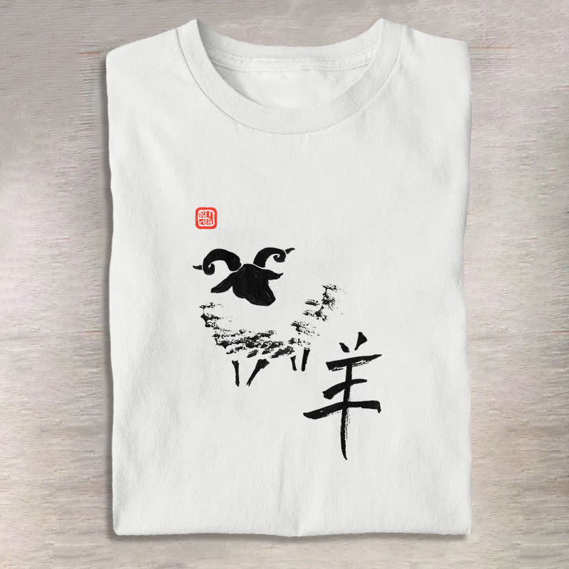 Dashingsoul Cotton Simple Ink Painting Of The Twelve Zodiac Signs Sheep Inspired Art Print T-shirt