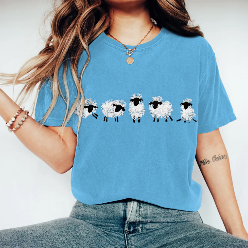 Dashingsoul Fuzzy Sheep Pattern Cozy Print Casual Short Sleeve T-shirt
