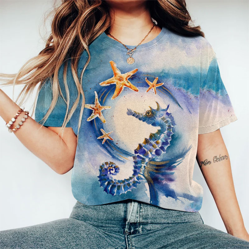 Dashingsoul Seahorse And Starfish Watercolor Art Print T-shirt