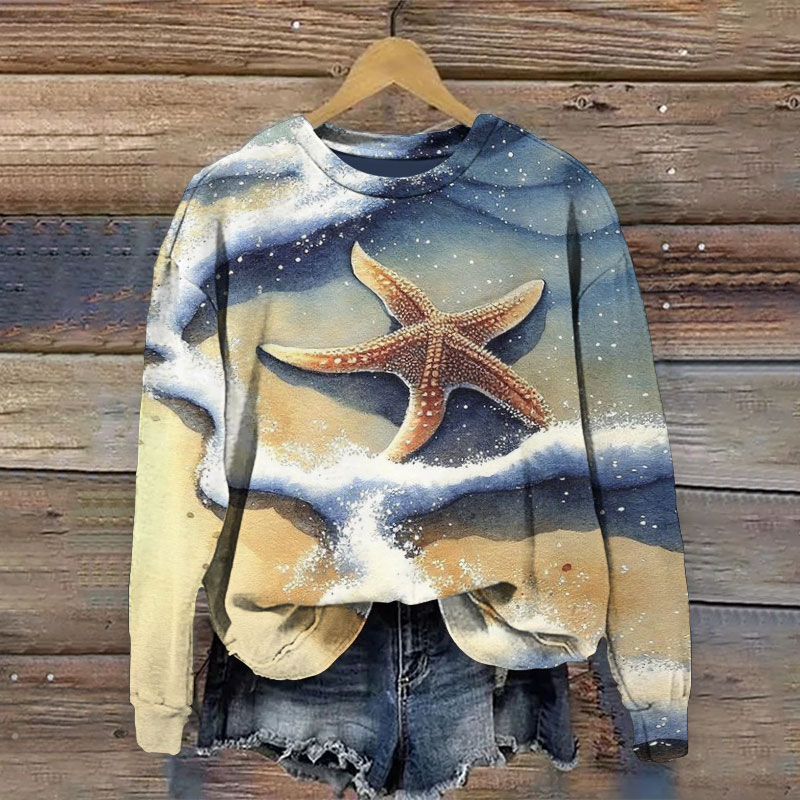 Dashingsoul Beach Starfish Print Sweatshirt
