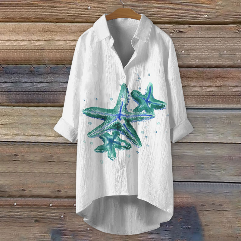 Dashingsoul Watercolor Simple Starfish Art Print Casual Shirt