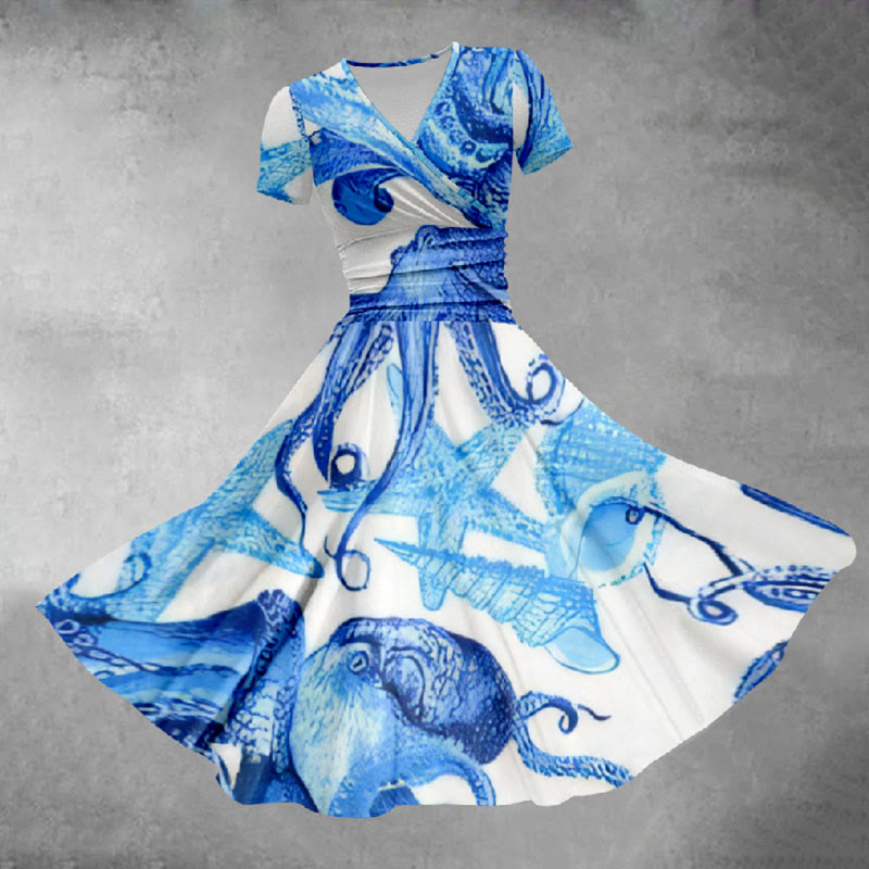 Marine Animal Starfish Pattern V-Neck Dress