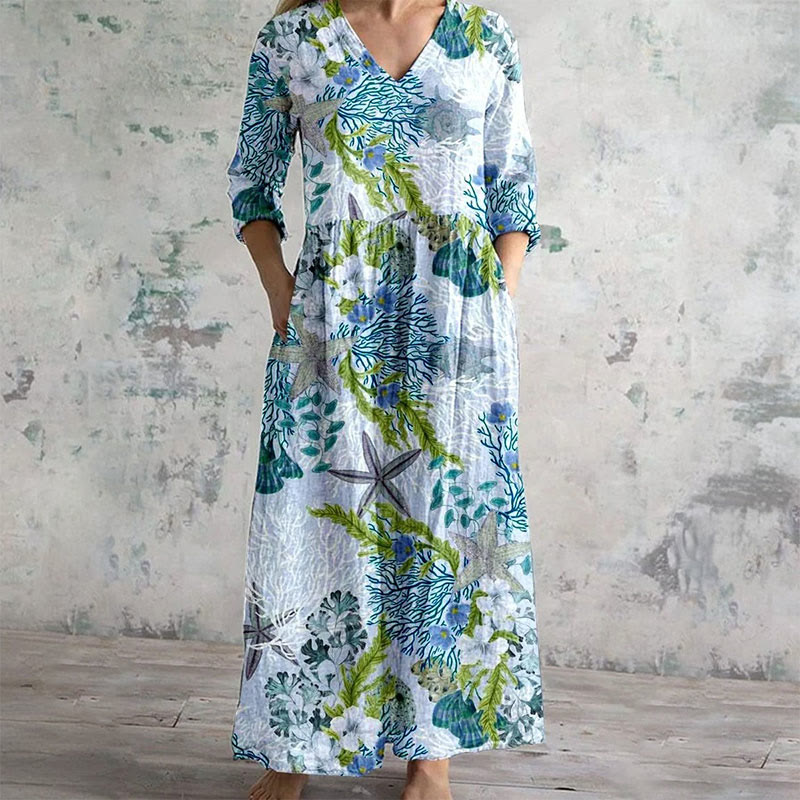 Women's Undersea Starfish Coral Art Print Casual V-neck Dress