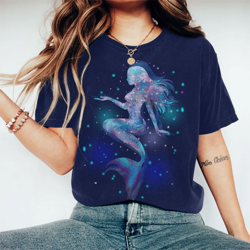 Dashingsoul Fantasy Mermaid Silhouette Print Short-sleeved T-shirt
