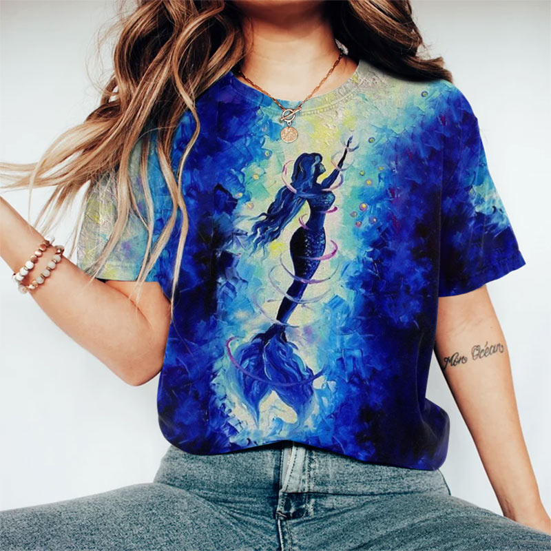 Dashingsoul Fantasy Undersea Mermaid Oil Painting Art Print Short-sleeved T-shirt