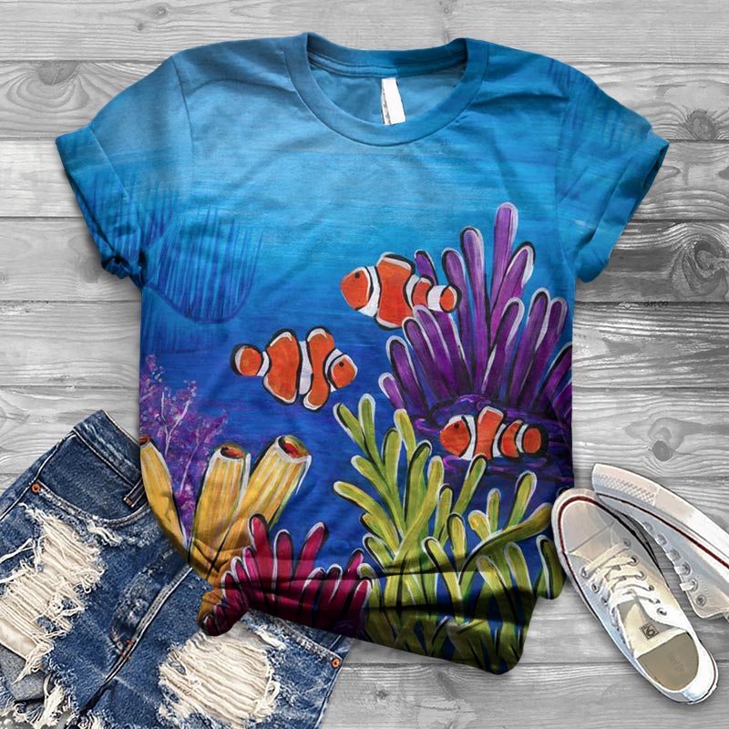Dashingsoul Cute Clown Fish Oil Painting Print Short Sleeve T-shirt