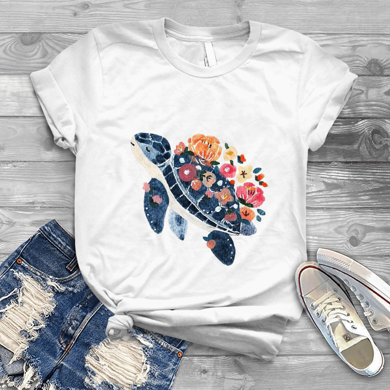 Dashingsoul Women's Cute Floral Turtle Print Casual T-shirt