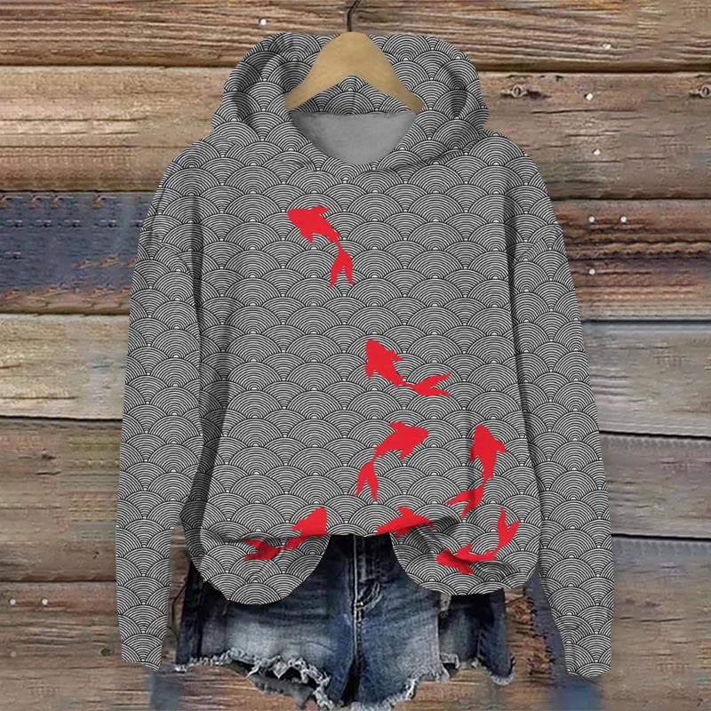 Dashingsoul Japanese Goldfish Art Print Casual Long Sleeve Hoodie