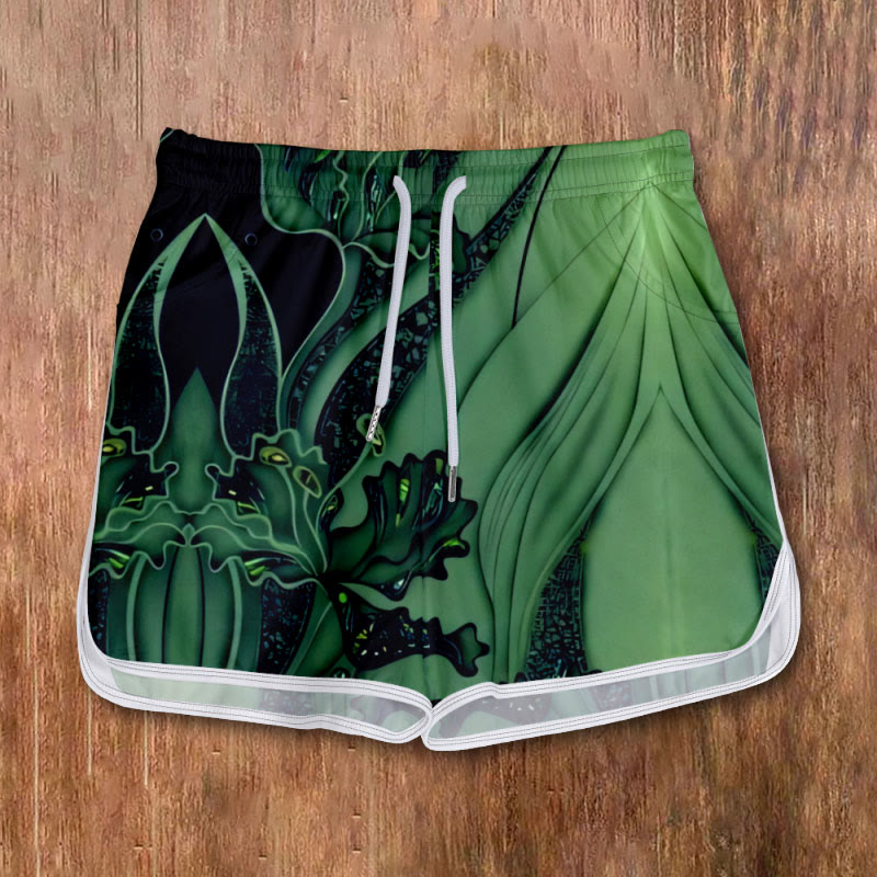 Dashingsoul Women's Fantasy Purpurea Blossom Art Print Drawstring Pocket Shorts