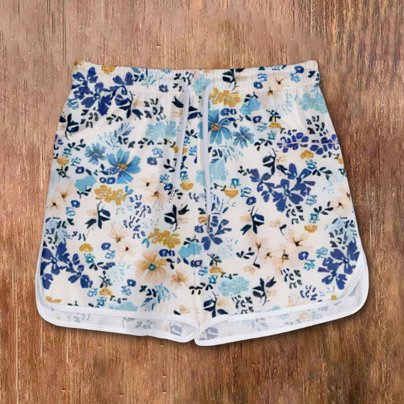 Dashingsoul Women's Vintage Flowers And Leaves Art Print Drawstring Pocket Shorts