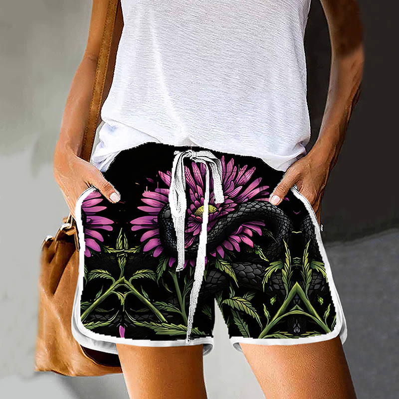 Dashingsoul Women's Creative Beach Style Floral Art Print Pocket Shorts
